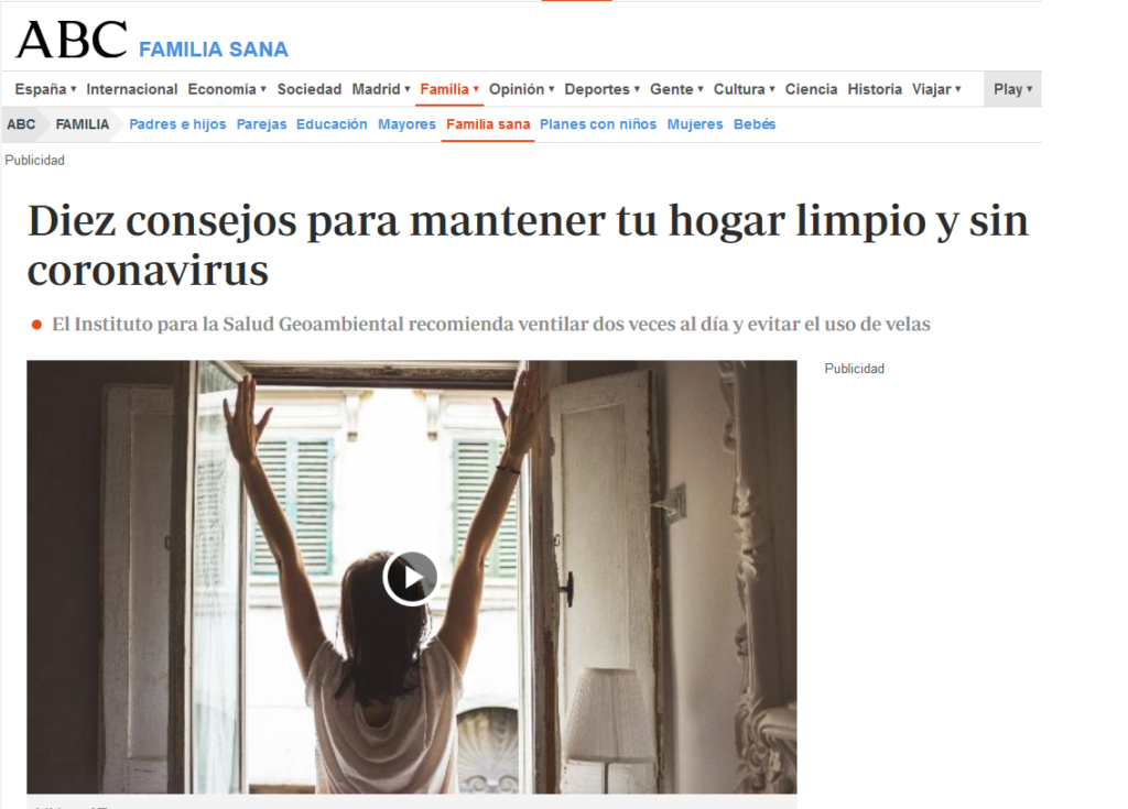 El diario ABC se hace eco de nuestro decálogo de salud geoambiental para el confinamiento por Covid-19 .